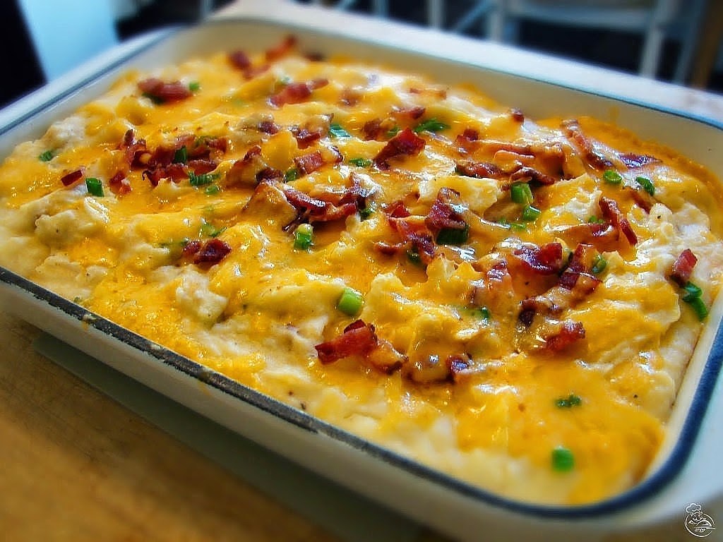 3. В форму для выпечки выложить ½ часть картофельного пюре, разровнять.
